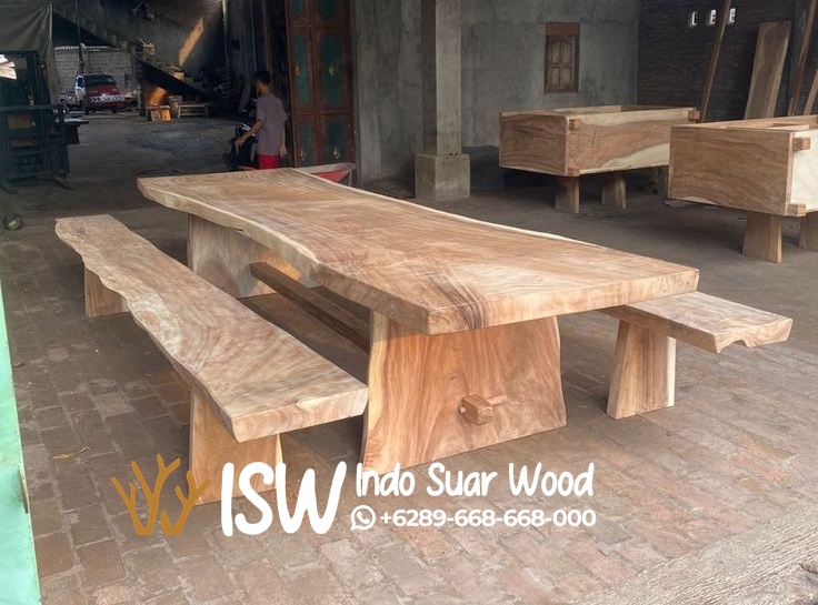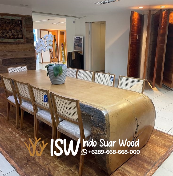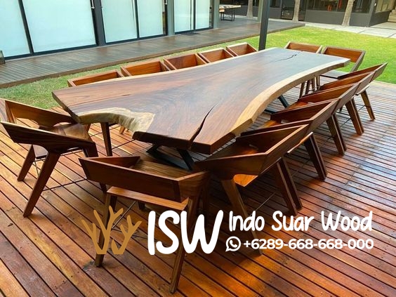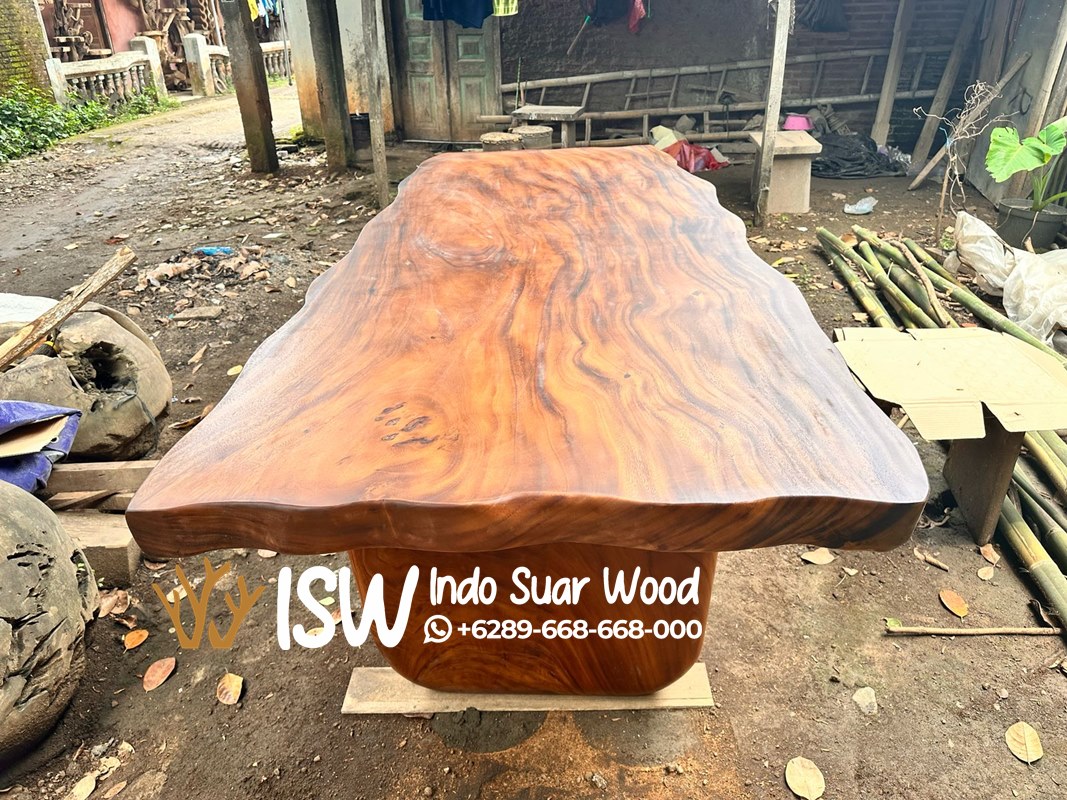 Keindahan visual dari kayu trembesi yang dibuat dalam bentuk meja tebal menciptakan kesan mewah, elegan, dan alami. Cocok untuk gaya interior modern, rustic, industrial, hingga minimalis.Ketebalan kayu trembesi menjadikannya sangat kuat dan tahan lama, bahkan dalam penggunaan jangka panjang. Kayu ini tidak mudah melengkung, retak, atau berubah bentuk karena perubahan cuaca. Trembesi adalah pohon yang tumbuh cepat dan tidak termasuk dalam kategori kayu langka atau dilindungi. Dengan pengelolaan yang baik, penggunaannya relatif berkelanjutan dibandingkan jenis kayu keras lainnya.