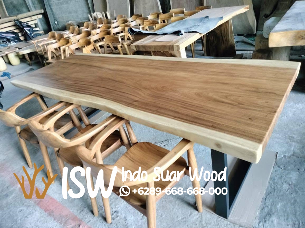 Meja makan memilki jenis sesuai dengan gaya rumah. Ada yang menggunakan Meja Kayu Trembesi Tebal minimalis hingga meja makan super mewah. Jika biasanya meja makan mewah identik dengan ukiran, namun berbeda dengan Meja Kayu Trembesi Tebal ini, Meskipun bentuknya yang minimalis, namun tampilannya juga tak kalah mewah dengan meja mewah lainnya. Dijamin muanttulll.