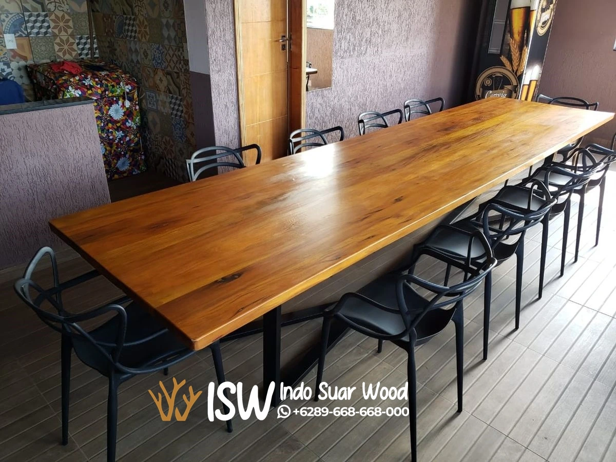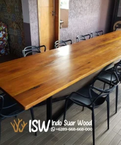 Meja Meeting Trembesi Kaki Besi Modern