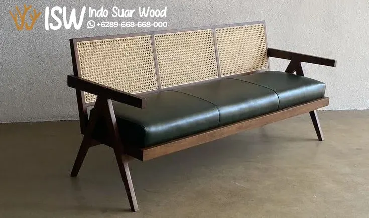 Bangku panjang ini adalah kombinasi yang menyatu antara keindahan gaya Mid-Century Modern dan elemen tropis yang anggun. Dengan rangka kayu solid yang kuat dan detail anyaman dari rotan yang halus, furnitur ini bukan hanya menyediakan tempat duduk, tetapi juga menciptakan pernyataan desain untuk ruangan Anda.