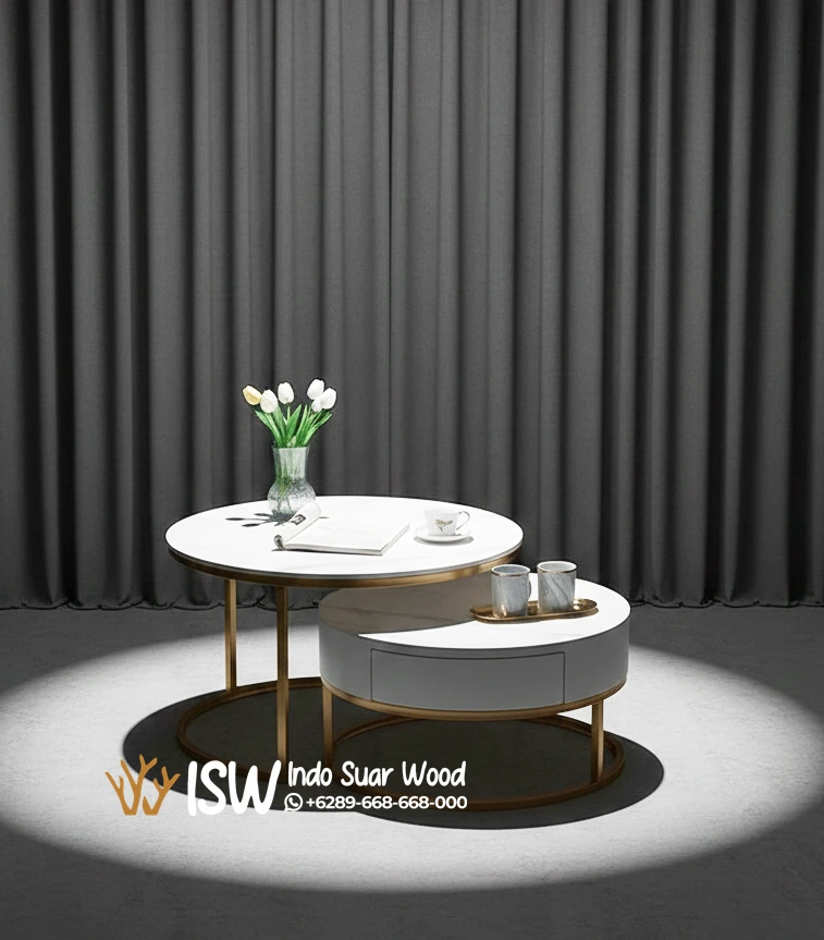 Coffe Table Marmer Bulat Laci ini kami buat secara khusus untuk anda dengan kombinasi tambahan laci yang dapat digunakan untuk menyimpan buku, majalah atau remote sehingga lebih terkesan rapih serta dapat membuat anda lebih mudah mencari sesuatu. Secara tampilan, Coffe Table Bulat Laci menawarkan sentuhan gaya modern minimalis yang dipadukan dengan nuansa elegan. Permukaan meja dibuat halus, kuat, dan kokoh sehingga nyaman digunakan untuk menaruh gelas, dekorasi vas bunga, makanan ringan, maupun pajangan estetik. Desain bulatnya juga menciptakan kesan hangat dan harmonis pada ruangan, menjadikan suasana lebih hangat dan bersahabat.
