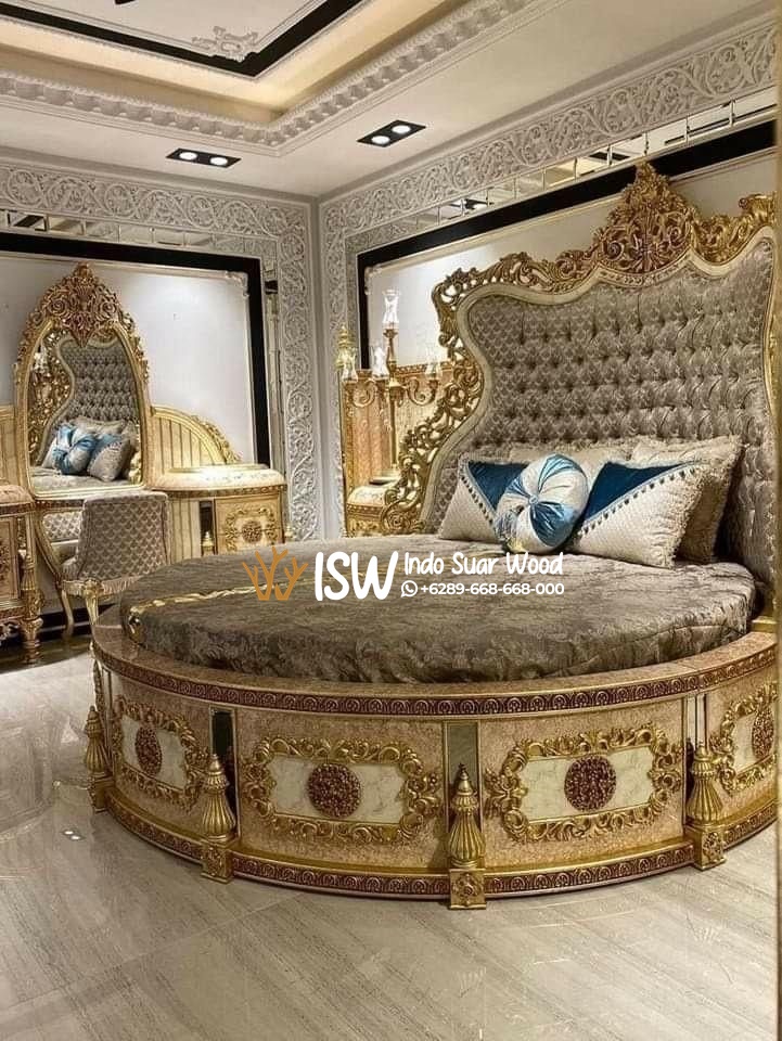 Dipan Tempat Tidur Prancis Luxury Gold Motif Ukir