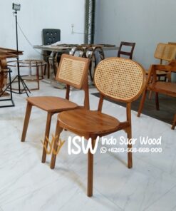 Dua model kursi rotan ini keduanya dibuat dari rotan dengan memiliki perbedaan di bagian sandaran punggung. untuk kursi cafe yang satu menggunakan desain dengan sandaran punggung bentuk oval sedangkan untuk kursi cafe yang satunya lagi menggunakan desain sandaran punggung dengan bentuk persegi panjang. namun kedua kursi tersebut sama sama terbuat dari kayu jati dengan kualitas jenis kayu terbaik. kursi-kursi yang terbuat dari rotan umumnya memiliki warna-warna netral seperti hitam, putih, abu-abu, atau warna kayu alami. untuk membantu menciptakan tampilan yang tenang dan serasi dengan berbagai jenis interior.