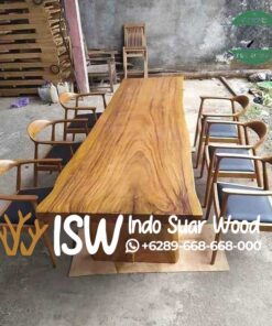 Jika membahas tentang furniture trembesi memang tidak akan ada habisnya sampai kapanpun. Meja ini menjadi incaran banyak orang karena memiliki harga yang relatif murah jika dibandingkan dengan kayu jati, Meja meja makan trembesi ini memiliki kualitas yang sangat bagus. Meja ini sangat cocok disandingkan dengan perabotan apapun. Kayu Trembesi (nama ilmiah: Samanea saman) merupakan jenis kayu keras tropis yang berasal dari pohon besar dengan diameter batang lebar. Trembesi memiliki karakteristik warna cokelat gelap pada bagian tengah (heartwood) dan warna krem pada bagian pinggir (sapwood), menciptakan kontras alami yang artistik. Trembesi memiliki warna coklat gelap di tengah (heartwood) dan warna krem cerah di pinggir (sapwood), menciptakan tampilan kontras alami yang sangat artistik. furniture trembesi memiliki banyak sekali produk seperti meja tamu, meja makan, meja meeting, namun kali ini kami akan membahas furniture tentang meja makan kayu trembesi