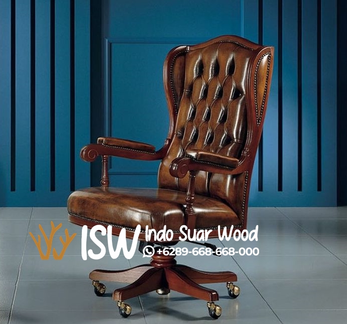 Harga Kursi Kantor Kulit tergantung dari kualitas bahan kayu, desain kursi, merek dan ukuran. Harganya bisa sekitar mulai dari Rp. 2.000.000 hingga Rp. 6.000.000 atau lebih. kursi kantor kulit ini terbuat dari rangka kayu jati untuk dudukan dan sandaran punggung terbuat dari busa empuk yang dilapisi kulit premium. Kayu jati sangat cocok untuk kursi Kantor karena memiliki beberapa kelebihan utama, seperti tahan lama, kuat, dan tahan terhadap serangga serta rayap. Selain itu, kayu jati juga mudah dibentuk dan memiliki tekstur yang indah, sehingga memberikan kesan mewah dan elegan pada kursi direktur. kulit memiliki tekstur yang lebih halus dan tampilan yang lebih mewah, sehingga dapat meningkatkan kesan profesional dan berkelas pada ruangan kantor sehingga memberikan dukungan dan kenyamanan saat duduk dalam waktu lama.