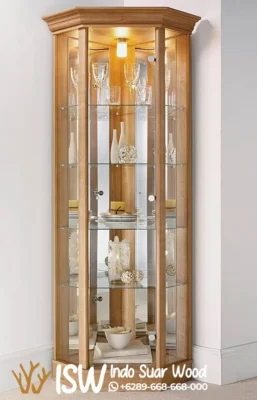 Gaya interior modern sangat beragam, Lemari Hias Sudut Kayu Kombinasi Kaca Tebal memiliki peran strategis sebagai elemen dekoratif sekaligus furnitur fungsional. Tidak hanya memperindah ruangan, lemari hias juga membantu mengorganisir barang dan menampilkan koleksi secara rapi. Dengan desain yang tepat, lemari hias dapat menjadi pusat perhatian yang meningkatkan nilai estetika interior. Lemari hias modern yang kag dengan konsep desain yang4e mengutamakan keseimbangan antara estetika dan fungsi. Material yang digunakan meliputi kayu sold beralitas dengan kobinasi kaca tebal.