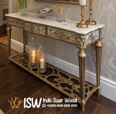 Meja konsol merupakan salah satu furnitur yang kini semakin banyak diminati untuk mempercantik tampilan interior rumah. Dengan desain yang ramping dan elegan, meja ini sering ditempatkan di area ruang tamu, lorong rumah, maupun dekat pintu masuk. Salah satu model yang sedang populer adalah meja konsol dengan rangka stainless dan permukaan marmer. Perpaduan dua material ini menghadirkan kesan mewah, modern, sekaligus kokoh untuk berbagai konsep interior rumah.