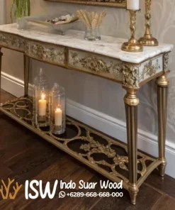 Meja konsol merupakan salah satu furnitur yang kini semakin banyak diminati untuk mempercantik tampilan interior rumah. Dengan desain yang ramping dan elegan, meja ini sering ditempatkan di area ruang tamu, lorong rumah, maupun dekat pintu masuk. Salah satu model yang sedang populer adalah meja konsol dengan rangka stainless dan permukaan marmer. Perpaduan dua material ini menghadirkan kesan mewah, modern, sekaligus kokoh untuk berbagai konsep interior rumah.