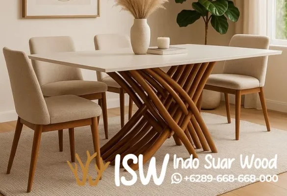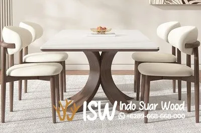 Jual Meja Makan Rangka Kayu Kombinasi Marmer Tebal