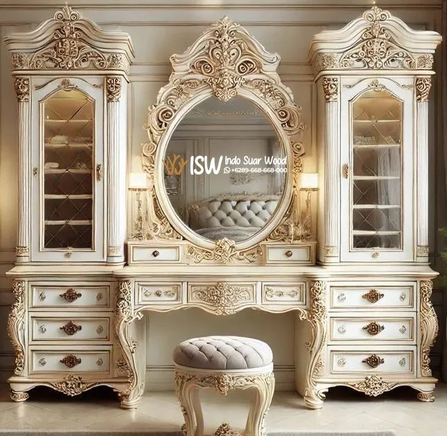 Perempuan pasti membutuhkan yang namanya meja rias yang bukan hanya berfungsi sebagai tempat untuk merias diri melaikan untuk menambah perlengkapan di dalam kamar yang bisa digunakan untuk menaruh makeup, skincare, dan barang berharga lainya. Kami menyediakan produk yang sangat dibutuhkan oleh wanita Jual Meja Rias Jati Ukir Jepara, menawarkan meja rias yang dibuat langsung oleh pengrajin Jepara yang sudah terkenal dan berpengalaman sehingga tidak di ragukan lagi akan kualitasnya dengan ukiran khas yang indah membuat meja ini terlihat mewah dan juga eregant.