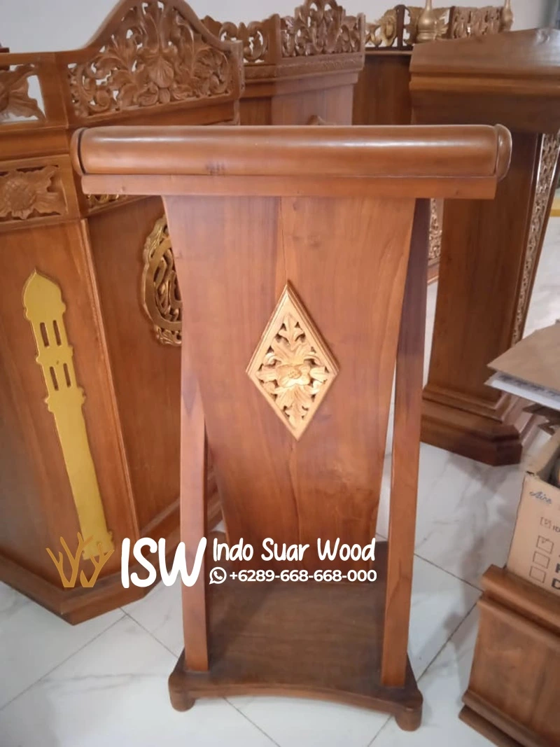 Podium Cianjur kini semakin diminati sebagai pilihan utama di berbagai tempat seperti masjid, musholla, sekolah, aula, hingga gedung pertemuan. Kombinasi antara keindahan alami kayu jati dan fungsionalitas desain menjadikan podium jenis ini tidak hanya kuat, tetapi juga memancarkan kesan elegan dan profesional.