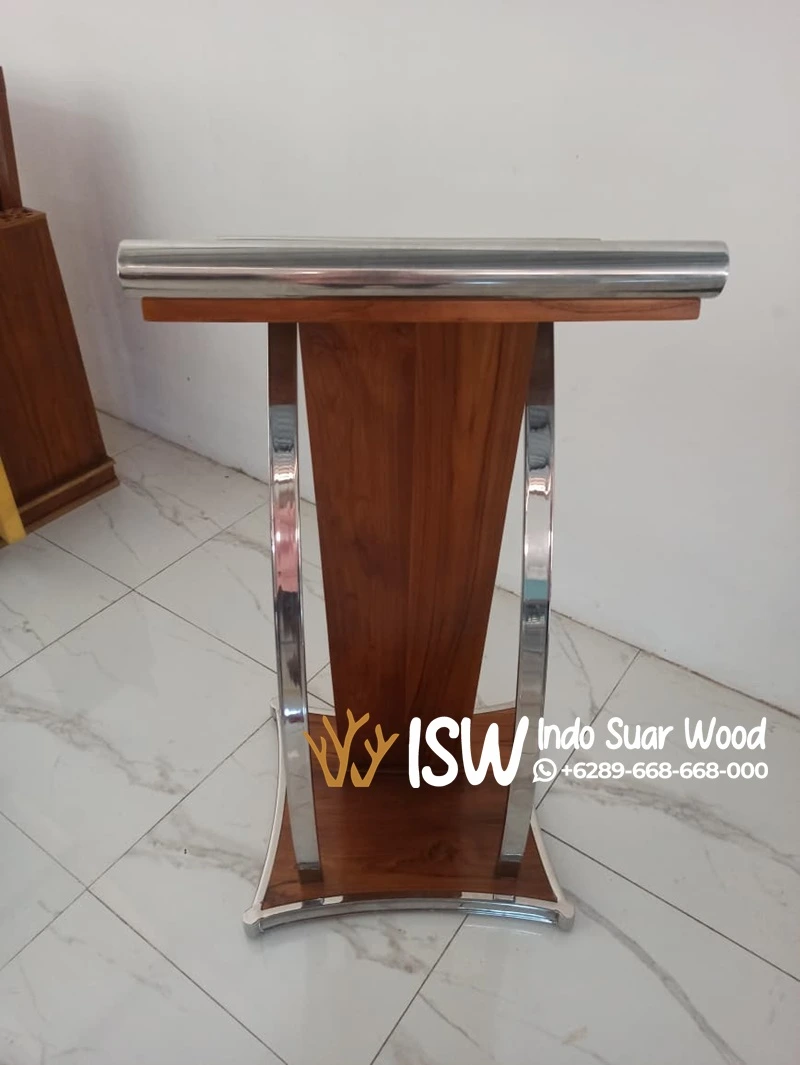 Podium membantu membatasi ruang pembicara dan berfungsi sebagai titik fokus visual bagi pendengar dalam sebuah forum atau acara resmi. Podium hadir dalam berbagai jenis bahan, mulai dari kayu, akrilik, hingga besi. Namun, Podium Indramayu yaitu podium kayu jati dengan variasi stainless memiliki keunggulan tersendiri yang membuatnya lebih unggul dibanding podium lainnya.