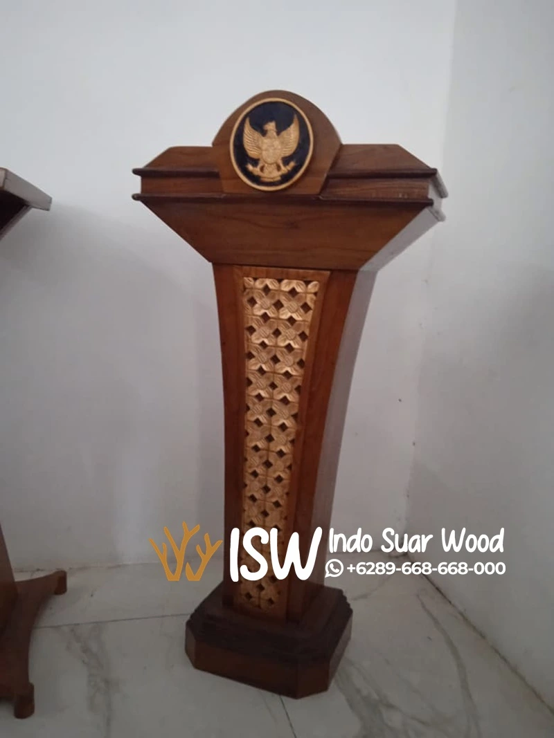 Podium merupakan furnitur dengan permukaan atas yang miring atau datar, sering dilengkapi dengan tempat meletakkan naskah, mikrofon, atau perangkat presentasi lainnya, dan biasanya memiliki tinggi yang disesuaikan secara ergonomis dengan postur pengguna.