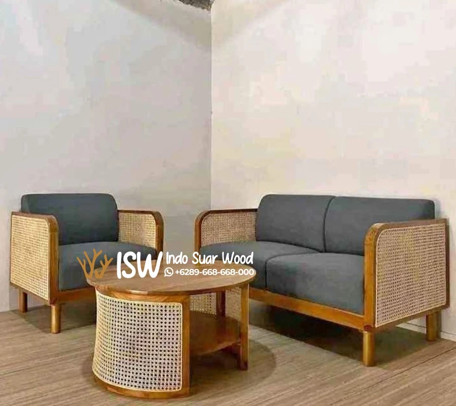 Set kursi kombinasi ini memadukan kayu, rotan dan kain busa lembut yang mengesankan bagi penggunanya, selain itu desainnya yang estetik membuat tampilan ruang tamu anda semakin menarik.