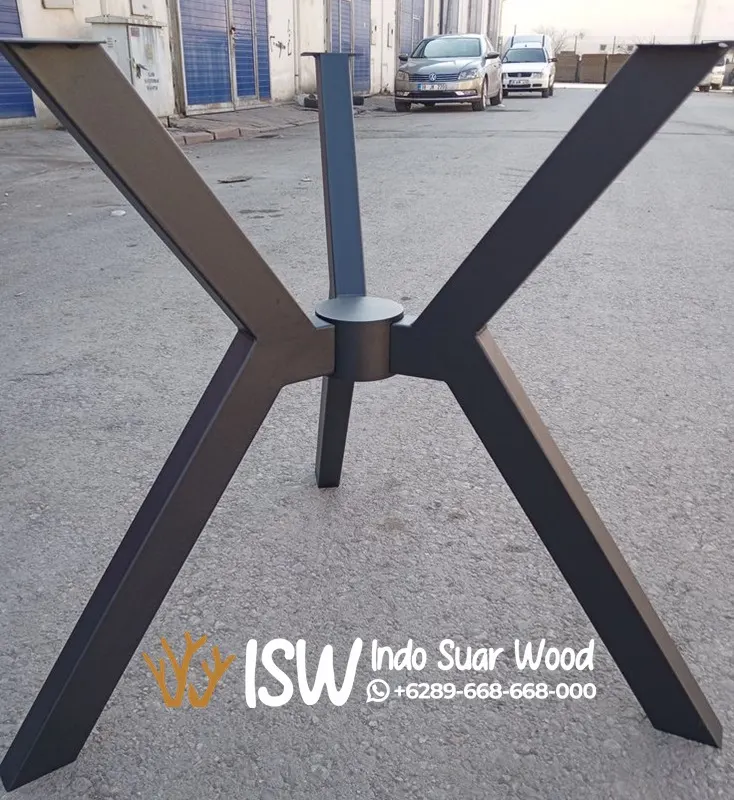 Bentukkan silang yang menyerupai kaki laba-laba, menyajikan area ruang kaki yang luas di bawah meja tanpa mengurangi stabilitas. Ideal untuk digunakan sebagai meja makan, meja rapat, atau meja kerja dengan gaya Industrial, Minimalis, dan Modern.