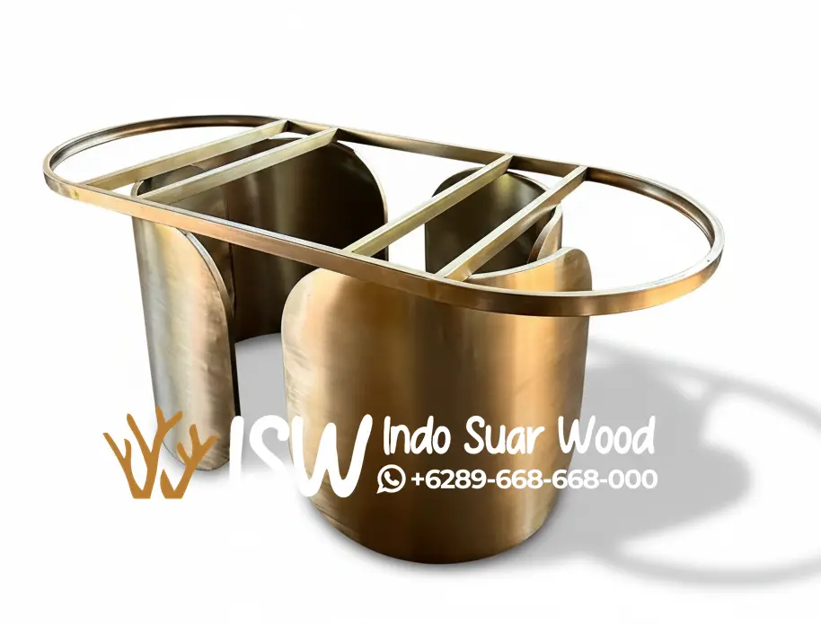 Hallo pernahkan anda mendengar kaki meja dari bahan stainless? kelebihan utama kaki meja stainless terutama Kaki Meja Stainless Gold memberikan sentuhan kemewahan dan kehangatan yang sulit ditandingi material lain. Warna emasnya memantulkan cahaya dengan indah, menciptakan efek kilau yang menonjolkan keanggunan ruang. Karena tampilannya yang netral namun glamor, kaki meja ini cocok dipadukan dengan berbagai jenis permukaan meja seperti marmer putih, granit hitam, kayu jati alami, maupun kaca tebal. Kombinasi ini menghasilkan tampilan modern yang mewah namun tetap elegan dan tidak berlebihan.