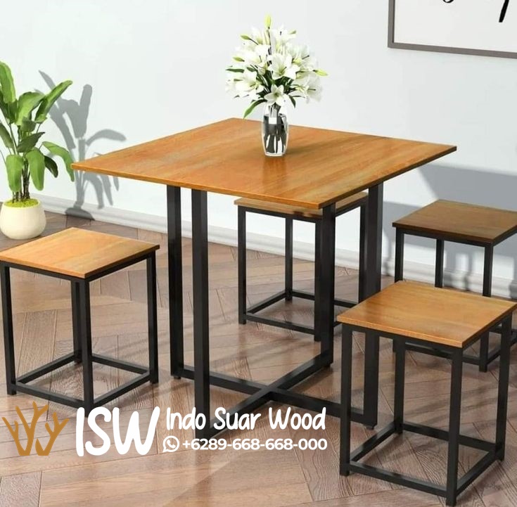 Kursi Cafe Minimalis Kaki Besi Kota Wonosobo terbuat dari bahan jati berbentuk persegi pada dudukan dan bahan besi pada kaki kursi. Kursi ini memiliki desain minimalis namun terlihat modern. Cocok dipadukan diberbagai interior ruangan. Kayu jati sangat cocok untuk kursi cafe karena memiliki kelebihan seperti kuat, awet, tahan terhadap cuaca, dan tahan terhadap rayap dan serangga. Selain itu, kayu jati juga memiliki estetika yang indah dengan serat yang menonjol, sehingga memberikan kesan elegan dan mewah pada kafe. Kayu memberikan sensasi hangat dan nyaman bagi pengunjung yang duduk di kursi kayu. Besi adalah material yang sangat kuat dan tahan lama. Kursi besi dapat menahan beban berat dan penggunaan yang intensif tanpa mudah rusak atau patah. Besi memberikan kesan modern, industrial, atau elegan pada cafe. Dibandingkan dengan beberapa material lain, besi relatif lebih murah dan ekonomis. Selain itu, kursi besi cafe sering kali dilengkapi dengan finishing anti-karat, yang menjadikannya cocok untuk penggunaan indoor maupun outdoor.