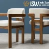 Terbuat dari kayu solid premium dengan lapisan alami yang menampilkan serat kayu halus. Kaki kursi diperkuat oleh palang melengkung (spretter) untuk menambah stabilitas sekaligus nilai estetika. Permukaannya dibalut kulit sintetis (faux leather) berkualitas tinggi yang lembut dan mudah dibersihkan, memberikan kesan mewah namun tetap minimalis.