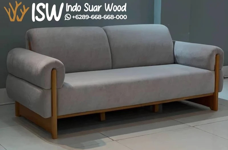 Sofa ini terbuat dari kayu jati yang sangat berkualitas, yang dikenal kuat, tahan terhadap serangan rayap, dan memiliki pola serat yang indah. Sandaran tangan dan bantal sofa dirancang membulat dan lembut, memberikan tampilan yang ringan tetapi tetap kuat. Cocok untuk gaya interior minimalis, Skandinavia, atau Japandi.