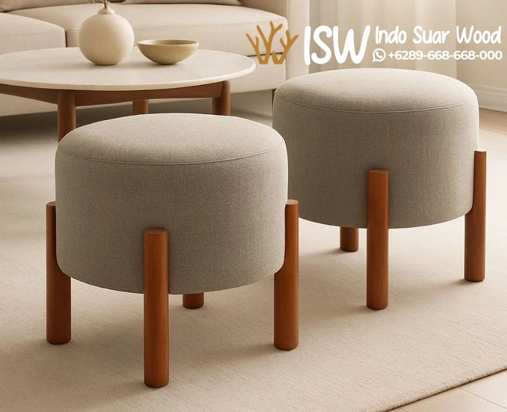 Kursi Stool Bulat Kaki Kayu Solid