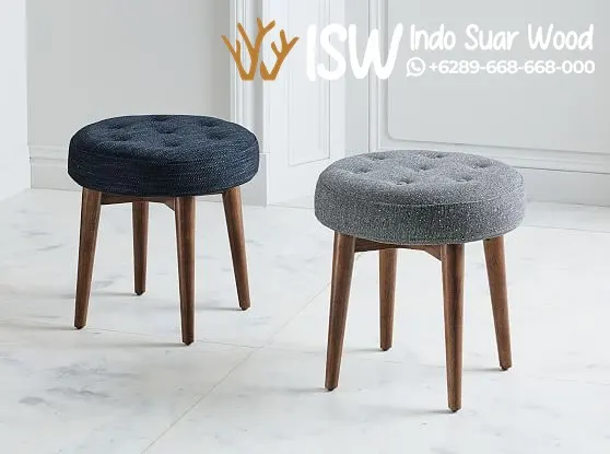 Kursi Stool Bulat Tufting Kancing Kayu Jati