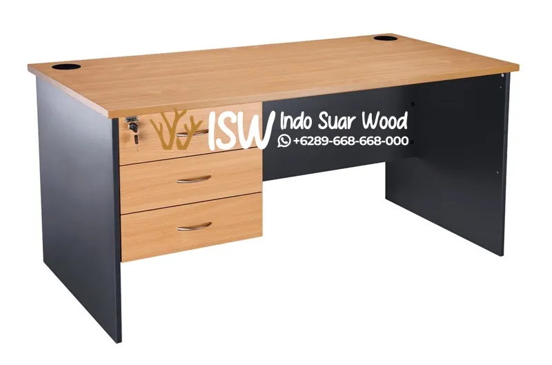 Di bagian bawah meja terdapat laci yang bisa digunakan untuk menyimpan dokumen penting, alat tulis, atau barang pribadi. Beberapa meja juga dilengkapi dengan lemari kecil di sampingnya untuk menyimpan berkas dan alat mengajar. Tinggi meja diatur agar nyaman digunakan saat duduk di kursi kerja, terutama dalam jangka waktu yang lama.