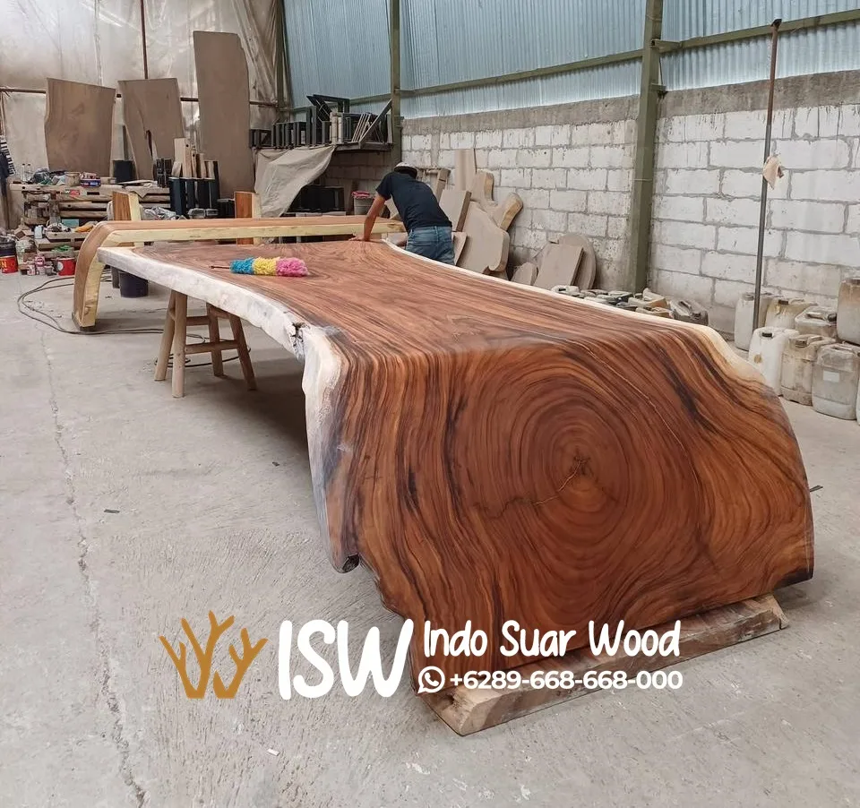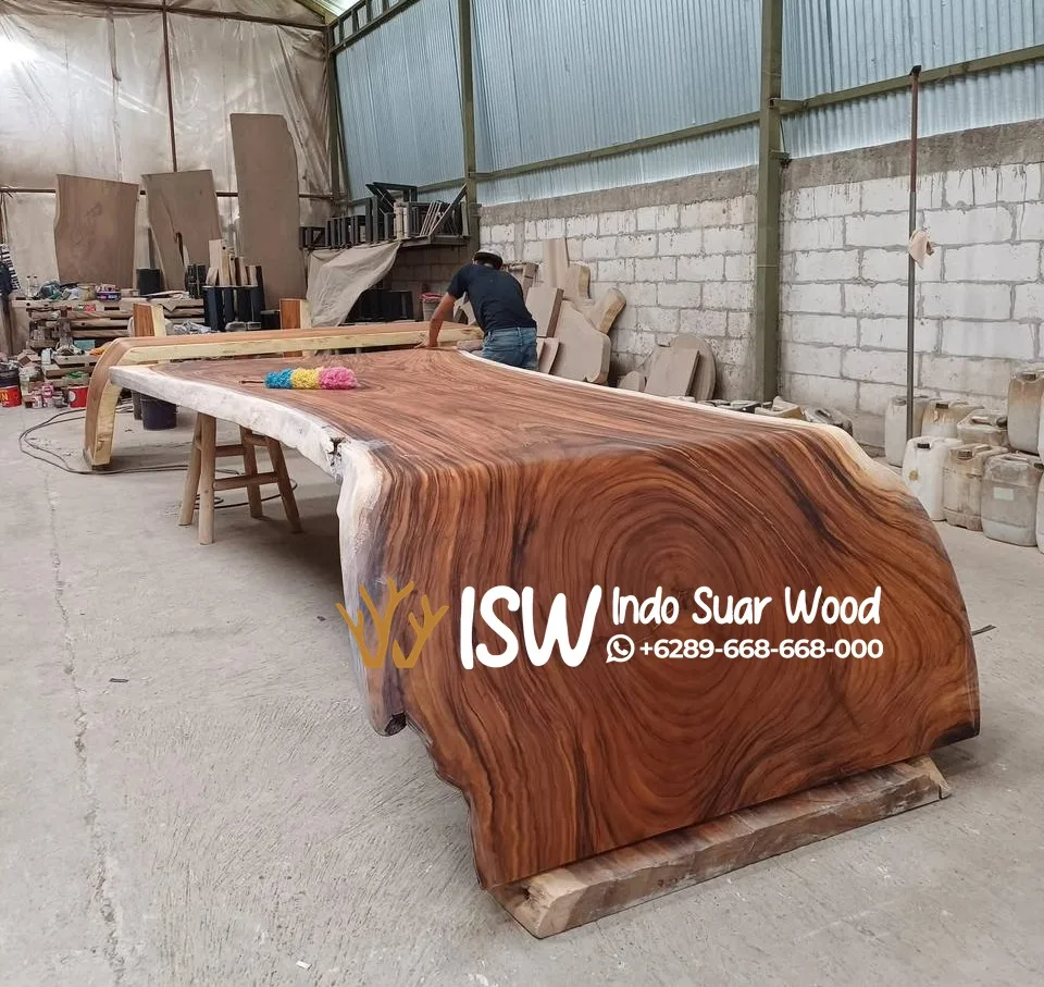 Pernahkah anda melihat meja besar di ruang rapat, restoran atau di rumah? jika pernah lantas kayu apa yang digunakan untuk membuat meja besar tersebut? pastinya anda akan bertanya tanya kan? nah biasanya kami menggunakan bahan kayu yang memiliki ukuran besar salah satunya yaitu dengan bahan kayu jati atau bisa juga dengan kayu trembesi. namun kayu jati relatif lebih mahal sehingga kayu trembesi menjadi opsi utama untuk menggantikan kayu jati namun dengan kualitas bahan yang hampir sama.