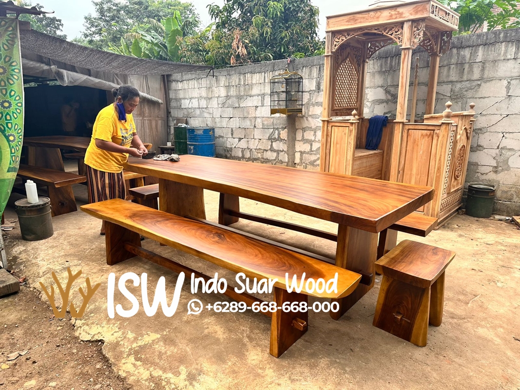 Kayu adalah bahan yang klasik dan tidak akan ketinggalan zaman. Desain meja kayu dapat disesuaikan dengan berbagai gaya interior, mulai dari klasik hingga modern. Meja kayu umumnya mudah dibersihkan. Cukup dengan lap kain atau kemoceng, noda dan debu dapat dengan mudah dihilangkan. Meja kayu dapat menciptakan suasana yang hangat dan akrab di dalam ruangan, menjadikannya pilihan yang baik untuk ruang makan atau ruang keluarga. Meja kayu yang dibuat oleh pengrajin terampil seperti kami dapat memiliki nilai artistik yang tinggi, menambah keindahan ruangan. Meja kayu umumnya tahan terhadap perubahan suhu dan tidak mudah rusak akibat paparan sinar matahari langsung namun, meskipun cukup kuat hindari terkena sinar matahari secara langsung dalam waktu yang lama karena dapat membuat warna dari Meja Kayu Utuh Panjang akan usang.