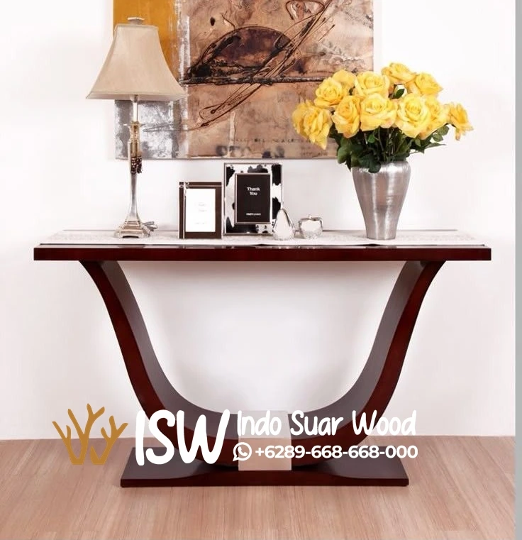 Meja konsol bisa diletakkan di ruang tamu atau di belakang sofa, berfungsi sebagai penopang lampu atau penambah elemen dekoratif di tengah ruang tamu. Meja Konsol Kayu Jati Aceh ini Terbuat dari kayu jati asli berkualitas tinggi, meja ini tidak hanya berfungsi sebagai pelengkap interior, tetapi juga menjadi elemen dekoratif yang mempercantik ruangan. Dikenal karena ketahanannya terhadap rayap, kelembapan, dan perubahan cuaca, kayu jati menjadikan meja konsol ini investasi jangka panjang yang tetap indah meskipun digunakan selama bertahun-tahun bentuk kaki melengkung menyerupai huruf U sehingga lebih kokoh dan tahan lama.