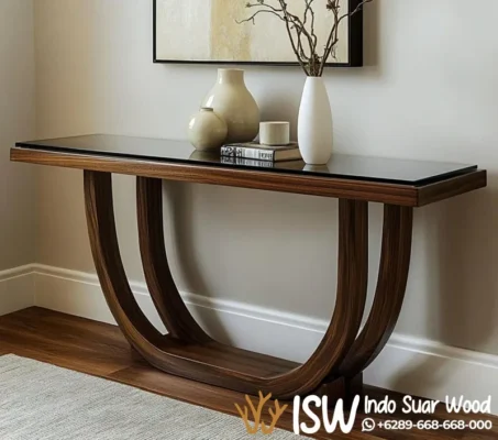 Percantik rumah anda dengan meja konsul kayu jati U ahape Magelang yang memancarkan kemewahan kontemporer. Meja ini diciptakan bagi anda yang mengutamakan harmoni antara seni modern dan material berkualitas tinggi.