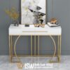 Meja Konsul Marmer Elegan Kota Sidoarjo ini mempunyai tampilan minimalis dan elegan, terbuat dari marmer hitam pada permukaan dan stainless gold berbentuk unik pada kaki meja. Marmer dikenal kekuatannya yang tahan lama. Warna hitamnya yang pekat memberikan kesan berkelas dan modern, sementara urat alaminya menambah keunikan pada setiap meja. Kaki meja stainless gold dikenal tahan karat, menjamin kekuatan dan keawetan meja, serta memberikan sentuhan mewah dan modern. Meja Konsul Marmer Elegan Kota Sidoarjo ini seringkali menjadi pilihan utama untuk mempercantik foyer, ruang tamu, atau sebagai pembatas ruangan yang elegan. Sidoarjo adalah sebuah kabupaten di Jawa Timur dikenal sebagai Kota Delta karena terletak di antara dua sungai besar, yaitu Kali Mas dan Kali Porong yang merupakan pecahan dari Kali Brantas.