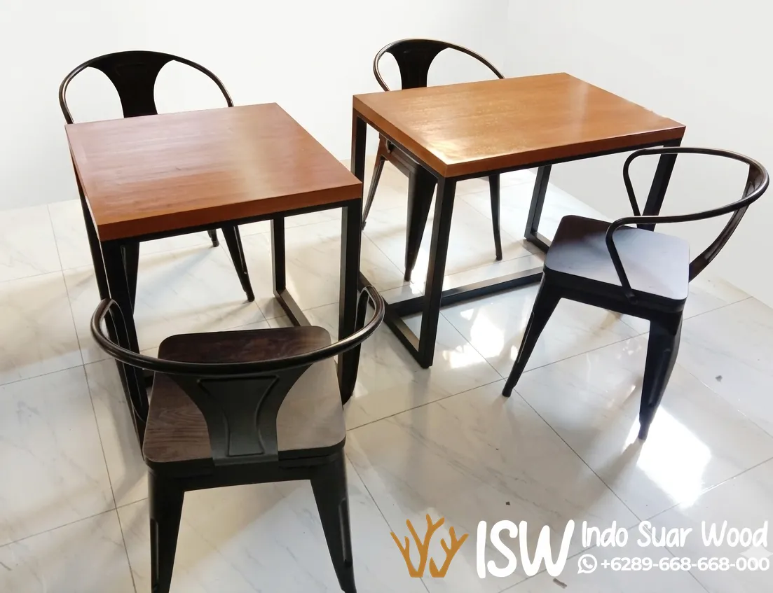 Gaya minimalis yang diusung mampu menciptakan suasana ruangan yang hangat, nyaman, dan Instagramable seperti Meja Kursi Cafe Rangka Besi Minimalis. Hal ini tentu menjadi nilai tambah bagi cafe Anda, karena pelanggan tidak hanya datang untuk menikmati makanan dan minuman, tetapi juga untuk merasakan suasana yang menarik dan berkelas.Material kayu yang digunakan pada kursi cafe ini umumnya berasal dari kayu pilihan seperti jati, mahoni, atau trembesi. Kayu-kayu tersebut terkenal memiliki kekuatan yang sangat baik serta tahan lama. Dengan proses pengolahan yang tepat, kursi cafe kayu modern mampu bertahan dalam penggunaan jangka panjang tanpa mudah rusak atau lapuk. Selain itu, serat alami kayu memberikan sentuhan estetika yang tidak bisa ditiru oleh bahan lain.