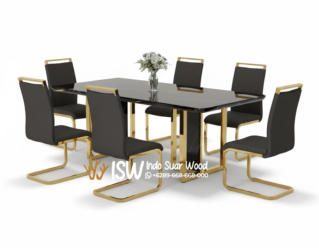 Memiliki meja makan dengan 6 kursi menjadi meja makan yang paling populer diindonesia dan mancanegara. Meja Makan 6 Orang dengan bahan marmer hitam dengan kaki meja stainless menjadil salah satu produk furniture yang terbaru serta yang terlaris dari kami karena memang banyak bangett yang tertarik dengan produk furniture meja makan marmer ini, selain memiliki kualitas yang terbaik tentunya meja makan marmer ini sangat cocok untuk menjadi meja makan dalam ruangan makan anda karena memiliki bentuk yang sangat luas serta tahan lama.