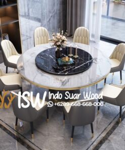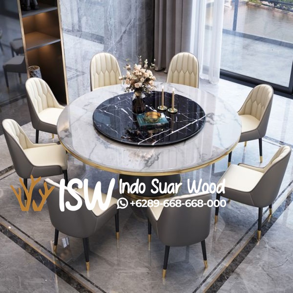 Meja Makan Batu Marmer dengan bentuk bulat dapat menciptakan suasana yang lebih intim dan nyaman, serta cocok untuk ruang makan yang lebih keci sebab tidak memiiliki sudut tajam, Meja Makan Batu Marmer tidak hanya berfungsi sebagai tempat makan, tetapi juga sebagai bagian dari dekorasi rumah yang mempercantik ruang makan.Meja Makan Batu Marmer Marmer memberikan kesan mewah dan berkelas pada ruang makan.