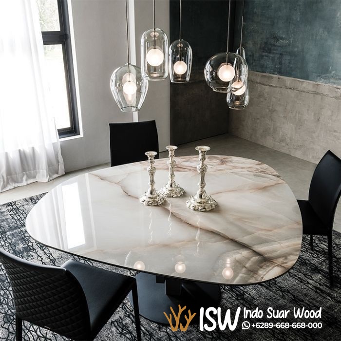 Meja Makan Granit Kota Bondowoso terkenal daya tahan tinggi dan keindahannya. Meja makan ini terbuat dari bahan granit berbentuk segitiga dan stainless hitam yang berbentuk unik dan modern. Meja granit dikenal karena permukaannya yang tahan gores dan panas, serta tahan lama, sehingga cocok untuk penggunaan sehari-hari di dapur. Granit memiliki berbagai warna dan pola alami yang unik, sehingga memberikan sentuhan elegan pada ruang makan. Kaki meja dari stainless hitam terkenal tahan karat dan korosi, serta tahan panas. Warna hitam pada stainless memberikan kesan modern dan elegan, cocok untuk berbagai gaya dekorasi interior. Bondowoso sebuah kota di Jawa Timur yang terkenal dengan tape singkongnya yang lezat dan menjadi oleh-oleh khas daerah ini. Pilih Meja Makan Granit Kota Bondowoso untuk mempercantik ruang makan Anda.