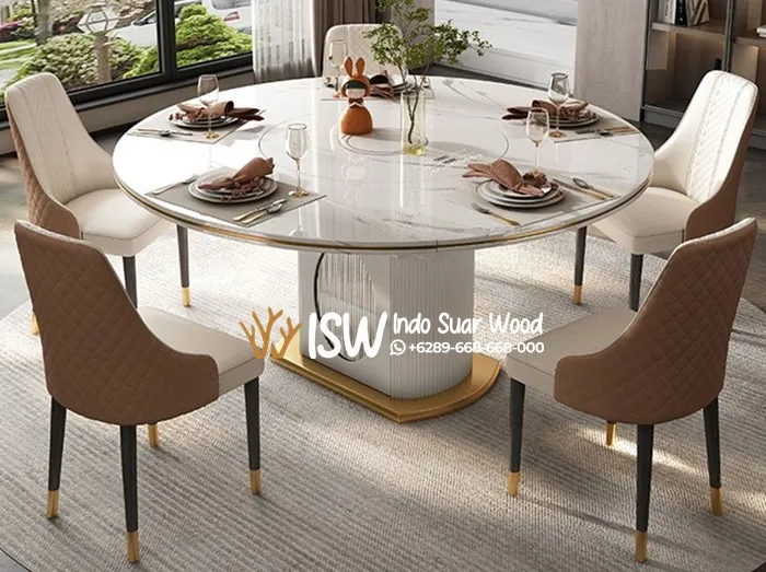 Meja Makan Marmer Bundar Mewah 5 Kursi