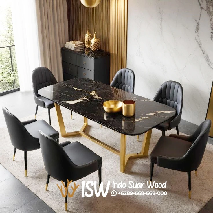 Meja Makan Marmer Hitam 6 Kursi