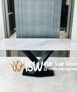 Marmer adalah salah satu batuan kapur yang telah mengkristal dengan endapan jutaan tahun yang lalu, marmer banyak kita jumpai dalam kehidupan sehari sehari untuk digunakan sebagai dekorasi bangunan seperti meja makan,lantai, dinding, bahkan patung. Model Meja Makan Marmer hitam akan memberikan kesan suasana ruang makan yang lebih modern, hal ini bisa di lihat dari desain daun meja dari bahan marmer yang bisa dipilih warna putih ataupun warna hitam, model alur yang unik pada meja marmer ini juga akan menampakkan kesan lebih mewah karena dari model alur meja yang tak beraturan memberikan model yang sedikit kemewahan di bandingkan dengan polosan saja, mungkin akan membosankan