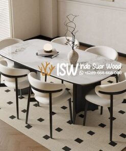 Kabupaten Bangkalan terletak di Jawa Timur, dikenal sebagai “Kota Dzikir dan Sholawat”. Bangkalan juga merupakan kecamatan yang menjadi pusat pemerintahan dan perekonomian kabupaten. Meja Makan Marmer Kaki Stainless Bangkalan ini terbuat dari marmer carara pada permukaan dan stainless warna hitam pada kaki meja yang dikenal kuat dan tahan lama, tahan karat dan korosi, cocok untuk menopang beban berat diatasnya. Meja ini menawarkan kombinasi antara keindahan alami marmer dengan kesan modern dan kokoh dari kaki stainless. Marmer adalah batu alam yang sangat kuat dan tahan lama, serta tahan terhadap goresan. Marmer carara memiliki warna putih yang netral dengan urat abu-abu memberikan kesan mewah dan elegan pada ruang makan. Meja Makan Marmer Kaki Stainless Bangkalan adalah pilihan yang tepat bagi mereka yang menginginkan meja makan dengan desain modern, elegan, dan tahan lama.