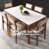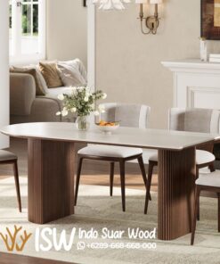 Meja Makan Marmer Kayu Jati menawarkan keindahan alami dan kesan mewah pada ruang makan. Meja ini memiliki permukaan marmer yang memberikan kesan elegan dan mudah dibersihkan, sedangkan rangka terbuat dari kayu jati yang menjamin kekuatan dan ketahanan yang lama. Permukaan meja terbuat dari marmer asli, yang terkenal dengan keindahan pola dan warna-warninya. Marmer juga tahan panas, sehingga dapat menahan piring dan gelas panas tanpa khawatir merusak permukaan. Rangka meja terbuat dari kayu jati yang kuat dan tahan lama. Kayu jati juga memiliki tekstur yang indah dan warna yang hangat, menambahkan kesan alami pada meja. Kayu jati terkenal dengan kekuatan dan ketahanannya terhadap rayap dan kerusakan. Kombinasi dengan marmer membuat meja ini tahan lama dan awet. Marmer memberikan kesan mewah dan elegan, sementara kayu jati menambahkan sentuhan alami dan hangat. Meja ini cocok untuk berbagai gaya interior, mulai dari gaya modern, klasik, hingga minimalis.