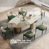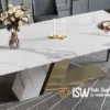 Bagian atas meja menggunakan batu marmer asli pilihan dengan corak urat alami yang unik dan eksklusif di setiap produk. Permukaan marmer yang halus, mengilap, serta tahan panas menjadikan meja ini ideal untuk aktivitas makan sehari-hari maupun jamuan istimewa. Selain itu, marmer juga mudah dibersihkan dan memiliki daya tahan tinggi, sehingga tetap terlihat mewah meski digunakan dalam jangka waktu lama. Yang dimaksud dengan marmer adalah jenis batuan kristal atau batu kapur yang mempunyai pola yang sangat menawan. Selain itu, batu ini juga memiliki kekerasan yang tinggi. Namun, karena ketahanannya yang kuat, marmer memiliki struktur yang sangat solid dan awet. Terutama dalam pembuatan furniture meja makan, marmer sangat cocok dan tentunya memiliki daya tahan yang luar biasa.