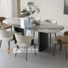 Meja makan dari bahan marmer memang memiliki daya tarik tersendiri yang membuat ruang makan anda semakin terlihat modern. Meja Makan Marmer Tanpa Sudut Kaki Stainless dengan bentuk daun meja tanpa sudut tajam dengan bentuk oval membuat meja ini menghadirkan tampilan yang lebih lembut, elegan, serta aman digunakan oleh seluruh anggota keluarga, termasuk anak-anak.