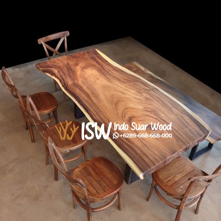 Meja Makan Trembesi Modern Kota Ngawi terbuat dari kayu trembesi dan besi hitam pada bagian kaki meja. Kayu trembesi memiliki kelebihan untuk meja makan yaitu memiliki desain unik dan elegan karena serat kayunya yang khas, daya tahan yang luar biasa, dan ramah lingkungan. Keunikan serat kayu trembesi dapat menambah nilai estetika ruangan. Besi hitam dikenal karena kekuatannya yang mampu menahan beban berat, sehingga cocok untuk kaki meja yang kokoh dan stabil. Meja makan ini cocok dipadukan diberbagai gaya interior ruang makan, membuat ruangan terlihat elegan dan mewah. Ngawi adalah sebuah kota di Jawa Timur yang dikenal sebagai daerah yang subur, dengan hasil bumi yang melimpah, terutama di sektor perkebunan seperti kakao, cengkeh, dan tembakau. Pilih Meja Makan Trembesi Modern Kota Ngawi untuk menambah estetika ruang makan Anda.