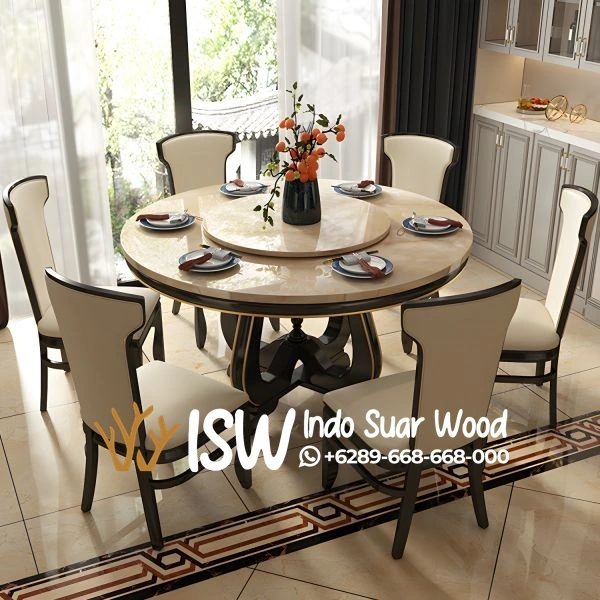 Meja Marmer Bulat Antik memiliki daya tahan yang tinggi. Marmer adalah material keras yang dapat bertahan puluhan bahkan ratusan tahun jika dirawat dengan baik. Inilah mengapa meja ini sering dianggap bukan sekadar furnitur, melainkan juga warisan keluarga yang bisa diteruskan dari generasi ke generasi. Marmer memiliki kilau alami dan motif unik yang membuat ruang makan terlihat lebih berkelas. Baik marmer putih, hitam, maupun marmer dengan serat alami, semuanya memberikan nuansa yang tidak bisa ditiru oleh material buatan. Dengan perawatan yang tepat, meja marmer dapat bertahan puluhan bahkan ratusan tahun. Material ini tahan terhadap panas dan goresan ringan, sehingga cocok digunakan sebagai meja makan sehari-hari.