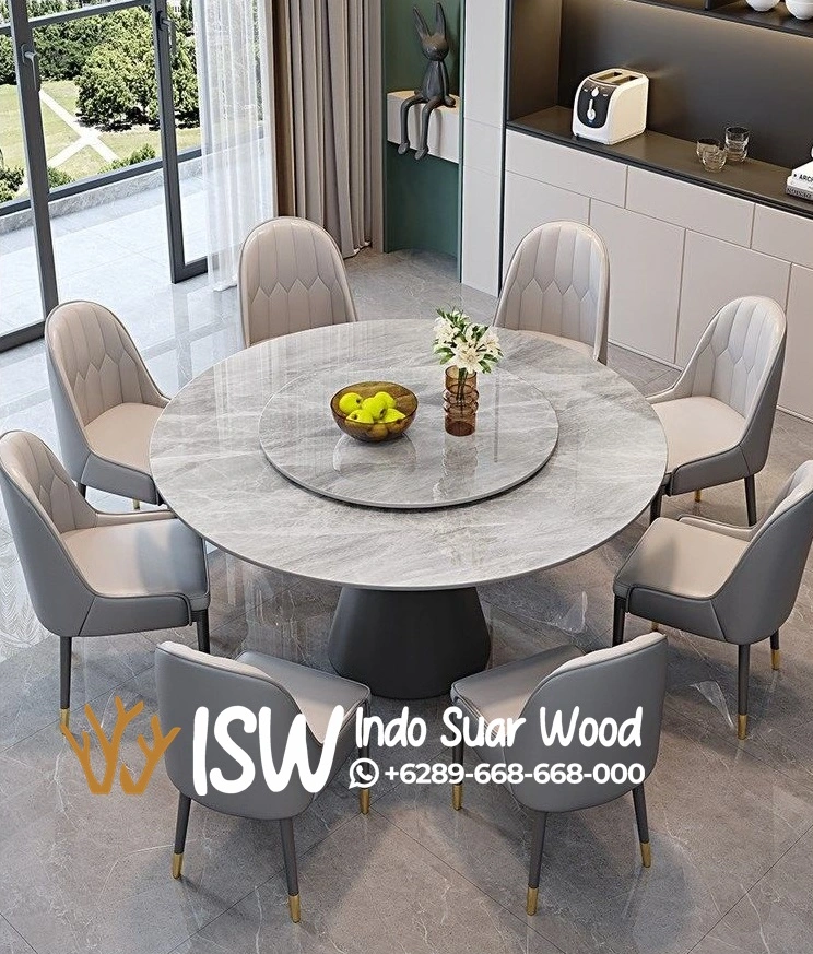Seperi yang kita tahu sekarng ini banyak meja dengan bentuk desain yang sangat bervariasi namun meja makan dengan bentuk bulat menjadi pencarian teratas dalam sebagai meja dengan model yang paling banyak peminatnya. Meja bulat memungkinkan semua orang yang duduk di sekelilingnya untuk saling berhadapan, menciptakan suasana yang lebih hangat, akrab, dan memfasilitasi percakapan yang lebih alami. Meskipun besar, bentuk bulat cenderung lebih fleksibel dan tidak “memakan” ruang sebanyak meja persegi panjang dengan ukuran yang sama, sehingga sirkulasi di sekitarnya lebih lancar bahkan mitosnya meja makan dengan bentuk bulat besar dipercayai Dalam budaya Tionghoa modern, meja bulat dianggap sebagai simbol kesetaraan karena tidak ada posisi “kepala meja” yang lebih tinggi, yang menekankan kebersamaan dan relasi sosial yang setara.