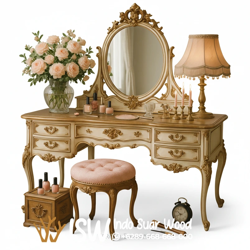 Sepertinya meja rias sekarang ini sudah menjadi kebutuhan hampir semua wanita di muka bumi, sebab meja rias memang memiliki banyak manfaat mulai dari untuk meletakkan skincare dan mackup namun juga untuk berdandan di depan cermin. kami memiliki produk meja rias yang asli buatan dari kota jepara. pastinya anda sudah tahu kan? bagaimana kualitas asli furniture dari jepara? yang tentunya sangat baik dari pengerjaan hingga finishingnya.