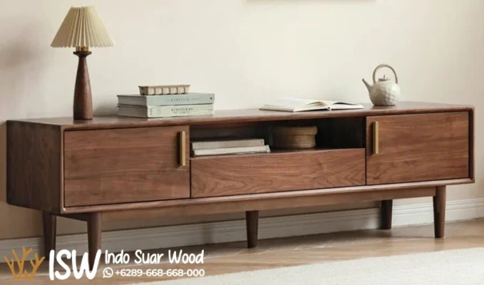 Berikut merupakan produk meja TV jati modern retro minimalis, yang dimana meja ini berbahan dasar kayu jati dengan memadukan keindahan desain klasik pertengahan abad ke-20 dengan kesederhanaan gaya minimalis masa kini.