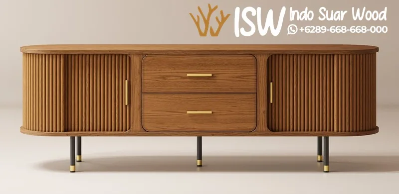 Meja TV Oval Minimalis Kayu Jati Linier