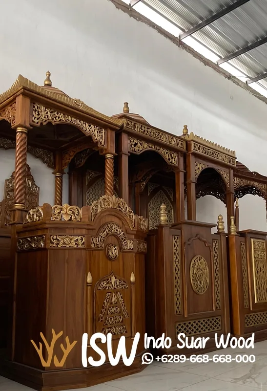 Mimbar Masjid Cilacap ini terbuat dari bahan kayu jati yang sudah terjamin ketahanannya hingga puluhan tahun. Proses pengerjaannya menggunakan teknologi terbaru dan diawasi secara teliti, mulai dari pemilihan kayu, proses pemahatan ukiran, sampai proses pengecetan. Mimbar Masjid Cilacap mempunyai harga yang sangat kompetitif dan sesuai dengan kualitas produk. Kami menawarkan semua produk dengan harga standar namun tidak menguragi kualitas dari produk.