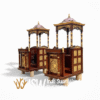 Kami menggunakan bahan-bahan terbaik, seperti kayu jati berkualitas tinggi dan bahan premium lainnya yang tahan lama, indah, dan kokoh. Kayu jati terkenal dengan ketahanannya terhadap cuaca dan kerusakan, menjamin mimbar ini dapat bertahan lama dan tetap indah meskipun digunakan dalam waktu yang panjang. Kami menyediakan beragam pilihan model Mimbar Masjid Pagaralam dengan atap kubah seperti pada gambar.